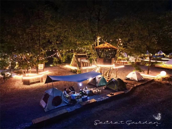 ●在這片清涼避暑,詩情畫意般的環境下露營怎么能忍住不來一次團建或家庭聚餐。這里不僅提供帳篷、天幕、涼亭、星空房等住所,還滿足游客休閑娛樂的各種要求。除了經典戶外燒烤,也少不了篝火晚會,家人朋友圍坐一起暢談夜話,歡聲笑語,累了躺下來欣賞夜空,多是一件美事。