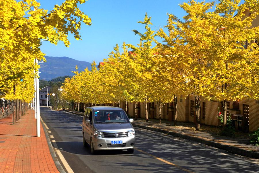 仙女鎮銀杏大道以其眩目的金黃,讓無數人著迷。古詩云“菊花如散金”,又云“吹落黃花滿地金”,卻也比不上眼前的銀杏葉更加金光燦爛??傁M~落不掃,就如偌大的原始森林一樣,任花與葉自在開落,那樣銀杏道便會鋪成一地金黃,軟軟地,像輕柔的純棉地毯。微風習習,這些充滿靈性的葉子好似金蝶輕輕地扇動翅翼。恰有一縷夕陽照射過來,金蝶更加熠熠生輝,異常美麗?;秀遍g,整株銀杏又仿佛成了千手,遍身閃耀著神奇的光芒。