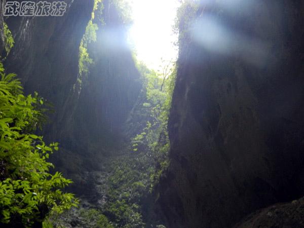 不登高山,不知天之大;不臨深谷,不知地之厚。這是我在進入武隆地縫的第一感受。沿著深邃的“時空隧道”,一直往下行去,有一種不斷深入地心的體驗。