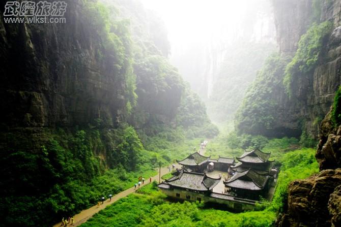 天生三橋位于重慶市武隆縣,是世界上最大的天生橋。大自然的鬼斧神工造就了這3座天生的石拱橋,使其具有雄、奇、險、秀、幽、絕等眾多特點,雖歷經千萬年的風風雨雨,至今卻依然如故。天生三橋風景區內,林木清秀,植被豐厚,蒼翠欲滴,飛泉流瀑遍布其間,包容了山、水、泉、峽、峰、瀑等眾多景色。灌木叢生,覆蓋三橋,更顯得三橋歷經千年之滄桑。清晨時分,霧氣彌漫,高大的三橋猶如連通天界神宮之間的御橋,更顯縹緲、震撼,令人不禁暗自相問:神乎?奇乎?