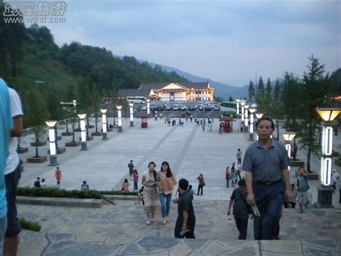 到達的時候已是傍晚。天色有些昏暗,加上山中霧氣彌漫,廣場上的燈便早早地亮起來了。