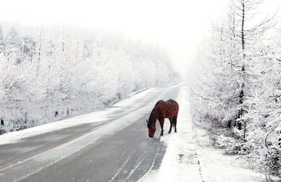 這是個四處飛花的季節(jié),那只馬,在花的世界里,走過一段段時光的碎片。在冰雪的世界,那匹心靜自然熱的馬兒,顯得格外自在。