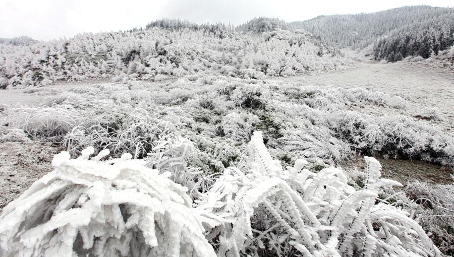 那些草,掛著一串串的冰凌,令人不忍心踩上去。于是這樣一句話突然就冒了出來:生平不會開花,才會開花,便見開花。