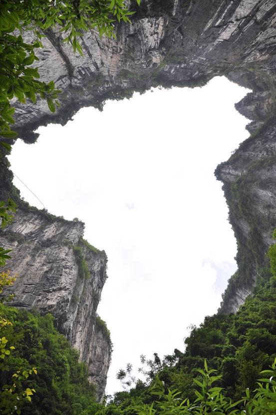 第三天的世遺之旅可以用“震撼”兩個字來形容。在沒有到達武隆之前,你根本無法想象,這里隱藏著一片占地萬多畝的神秘地帶,猶如與外界隔絕一樣讓人震撼。乘坐觀光電梯,直達地平線下300米的神秘世界,從上而下,剎那間直觸眼球。天龍、青龍、黑龍三座橫跨在峽谷上的天生石拱橋,平均高200多米,橋面寬約100米,相距1公里,被譽為“亞洲最大的天生橋群”,第31屆世界遺產大會全票通過,列入世界自然遺產名錄。