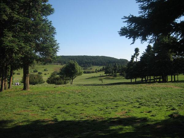 美麗多姿的仙女山高山草地:仙女山草地距離武隆縣城二十七公里,屬仙女山鎮(zhèn)(天生三橋、龍水峽地縫也屬這個(gè)鎮(zhèn)),海拔兩千多米,山頂是個(gè)美麗的大壩子,種植了很多杉樹,現(xiàn)在已經(jīng)成林,十萬畝草地像綠色的大氈子鋪在杉林的中間,杉林在這里就似乎成了草地的哨兵。草不深,馬牛羊卻不少,據(jù)說,很久以來,這上面的人就以放牧為生。因?yàn)樯礁撸奶旆浅鏊灰谔枙癫坏降牡胤剑透杏X到?jīng)]有被衣服遮住的地方,冷得起雞皮皺。加上今年夏天非常熱,所以山上游人如織,成千上萬不是形容游人,而是形容車子。故山上賣披肩的商販,今年很賺了一把。