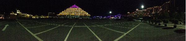 晚上7點意猶未盡地離開我心愛的大草原,吃過晚飯,散步到燈火輝煌的武隆游客中心,當天售票已經結束,只好在前面廣場留影紀念。游客中心左邊是一幢幢的小洋樓,右邊是仙女山鎮的五星級酒店。仙女山鎮其實并不大,現正在大量地修建新樓盤,全為黃色和蘭色的小洋樓,一直延伸到天生三橋景區,但不知道仙女山鎮的本地人會不會購買呢?而外地人又有多少愿意來住這樣的小洋樓呢?