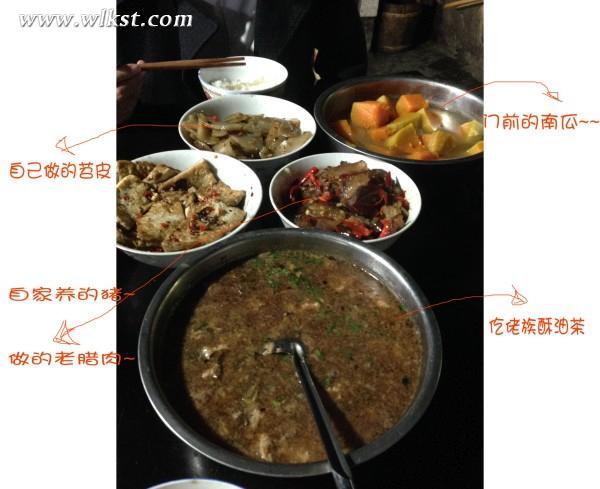 大姐(房屋主人)給我們準備了“天然綠色餐”。從不吃肥肉的我居然連吃了好幾塊!老臘肉肥而不膩,入口即是一陣香氣四溢。