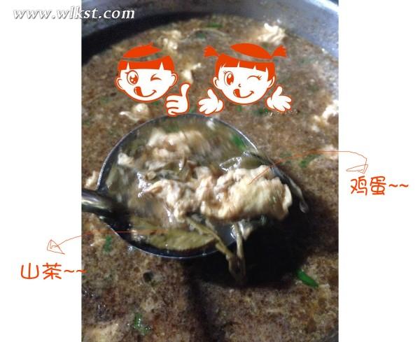 油茶是仡佬族的一大特色,它與西藏的酥油茶完全不一樣。山間野茶用油煎炒后加水煮沸,晾干后用木瓢背反復揉成漿狀,稱“茶羹”,再加油煎羹,添水煮沸,加雞蛋、鹽,花椒調味。油茶被仡佬族視為待客佳品。