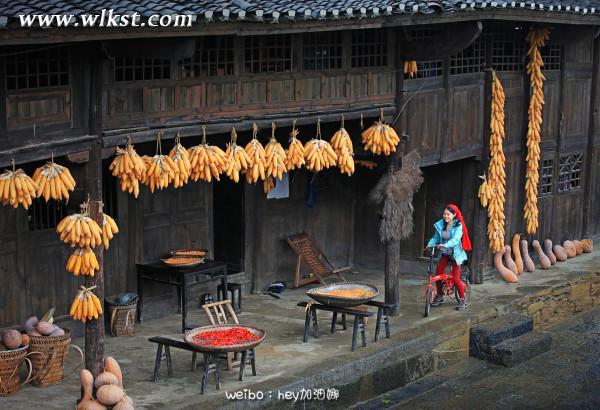 一進寨子便被滿院的色彩所吸引。火紅的辣椒,金黃的玉米串兒,綠油油的柚子樹。一副秋收的熱鬧場景。