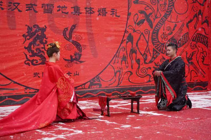 武小仙隆小馬作見證,99對新人舉行漢式雪地集體婚禮