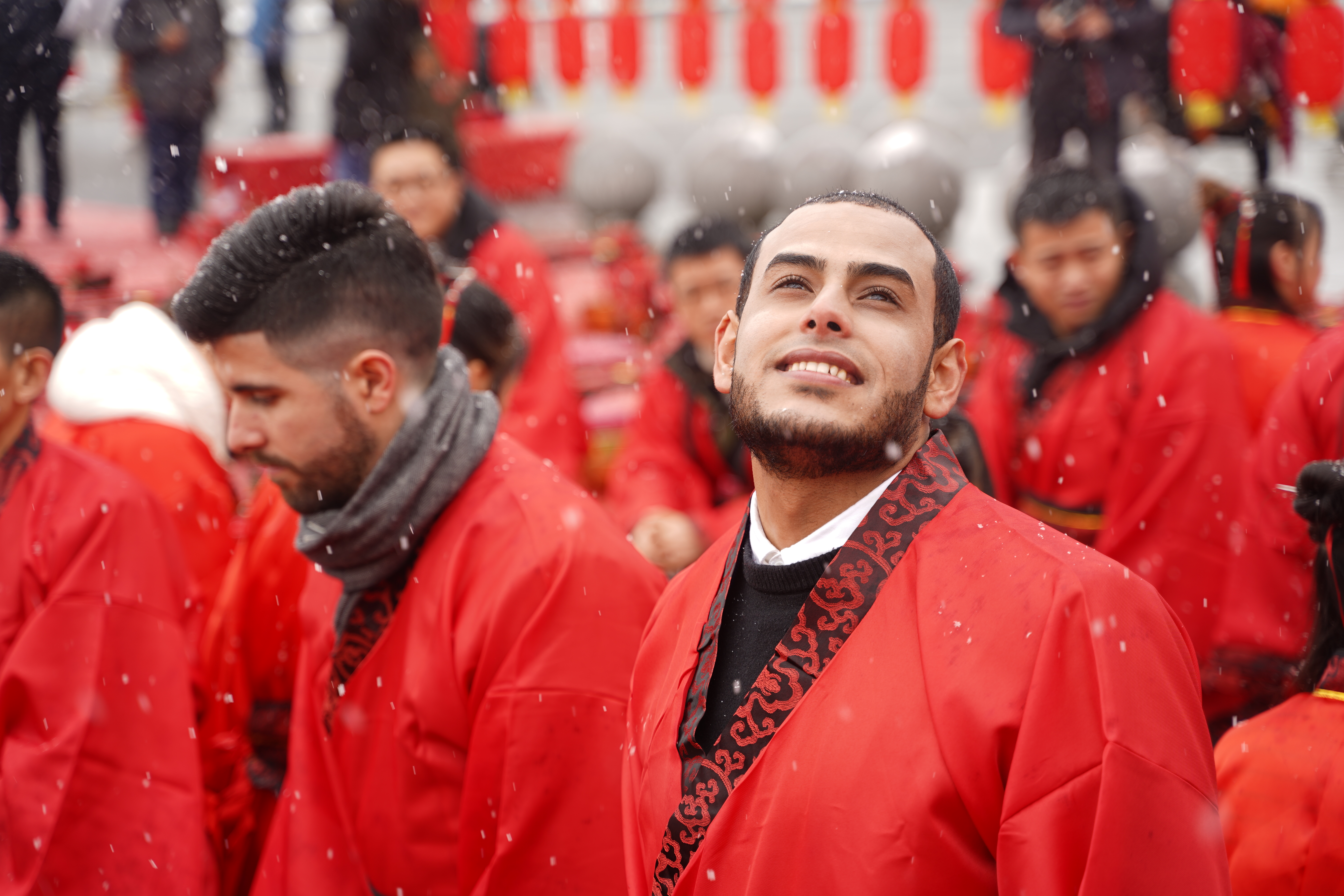 除了美景美女,21日當天還見證了99對情侶的雪地婚禮。零下3℃的雪中集體婚禮一定是一輩子都忘不掉的美好回憶。這些情人來自全國30多個省市、港澳臺地區,還有部分外籍友人。他們身穿大紅色漢服,完整地體驗了一把中國傳統婚禮。