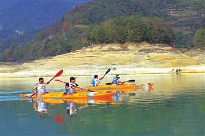 第三賽段的比賽項(xiàng)目依次為游泳、山地車(chē)、皮劃艇、越野跑、探洞共五個(gè)項(xiàng)目。起點(diǎn)設(shè)在石橋苗族土家族鄉(xiāng)獨(dú)竹漂訓(xùn)練基地,終點(diǎn)在芙蓉洞景區(qū),賽事里程45公里。參賽隊(duì)員們從獨(dú)竹漂訓(xùn)練基地出發(fā),游泳結(jié)束后換項(xiàng)山地車(chē),繞芙蓉湖一圈后到起點(diǎn)換項(xiàng)皮劃艇,劃至芙蓉江碼頭后換項(xiàng)越野跑,穿越芙蓉洞后抵達(dá)終點(diǎn)。