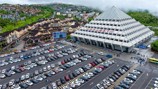 游客中心停車場車輛整齊排列