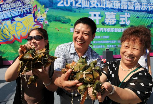 “五、四、三、二、一,比賽開始!”隨著裁判的一聲哨響,十名選手迅速的開始了手上的“工作”。這是6月23日下午,仙女山上演的一幕,隨機(jī)選取十名游客現(xiàn)學(xué)現(xiàn)做進(jìn)行包粽子吃粽子比賽,為2012年仙女山草原露營音樂節(jié)提前預(yù)熱。