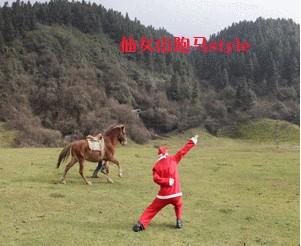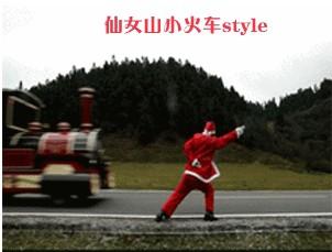 圖片中,可愛的網友身著圣誕紅裝,面對駿馬、仙女山特色小火車及卡丁車,效仿航母style中的經典姿勢,給大家帶來不一樣的“走你”。