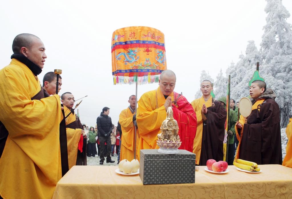 隨后在中國社會科學院特邀研究員、重慶華巖寺方丈,重慶佛學院常務副院長,重慶市華巖文教基金會理事長道堅法師的帶領下大家在山頂一起進行了守望陽光,祈福世界的開光儀式。在道賢法師的帶領下,大家紛紛許下了愿世界和平、天下大同,家人身體健康,事業進步,愛情順利等愿望。