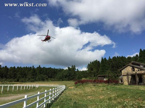 直升機盤旋在仙女山上空