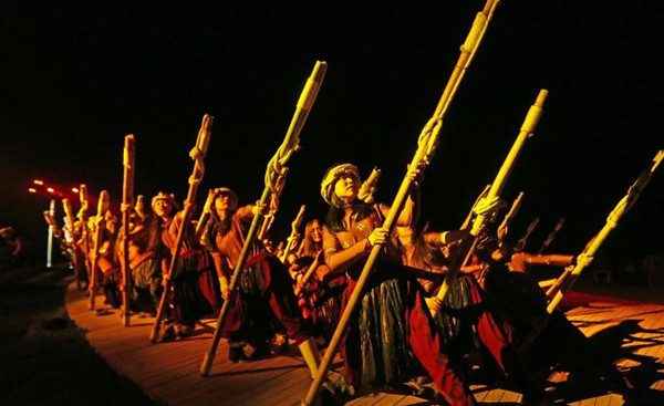 5月27日晚,德國旅行商代表團(tuán)抵達(dá)武隆區(qū),觀看了由“印象鐵三角”張藝謀、王潮歌、樊躍導(dǎo)演,100多位特色演員現(xiàn)場真人真情獻(xiàn)唱,以瀕臨消失的號子為主要內(nèi)容,讓觀眾在70分鐘的演出中親身體驗(yàn)自然遺產(chǎn)地壯美的自然景觀和巴蜀大地獨(dú)特的風(fēng)土人情的大型山水實(shí)景演出—《印象武隆》。