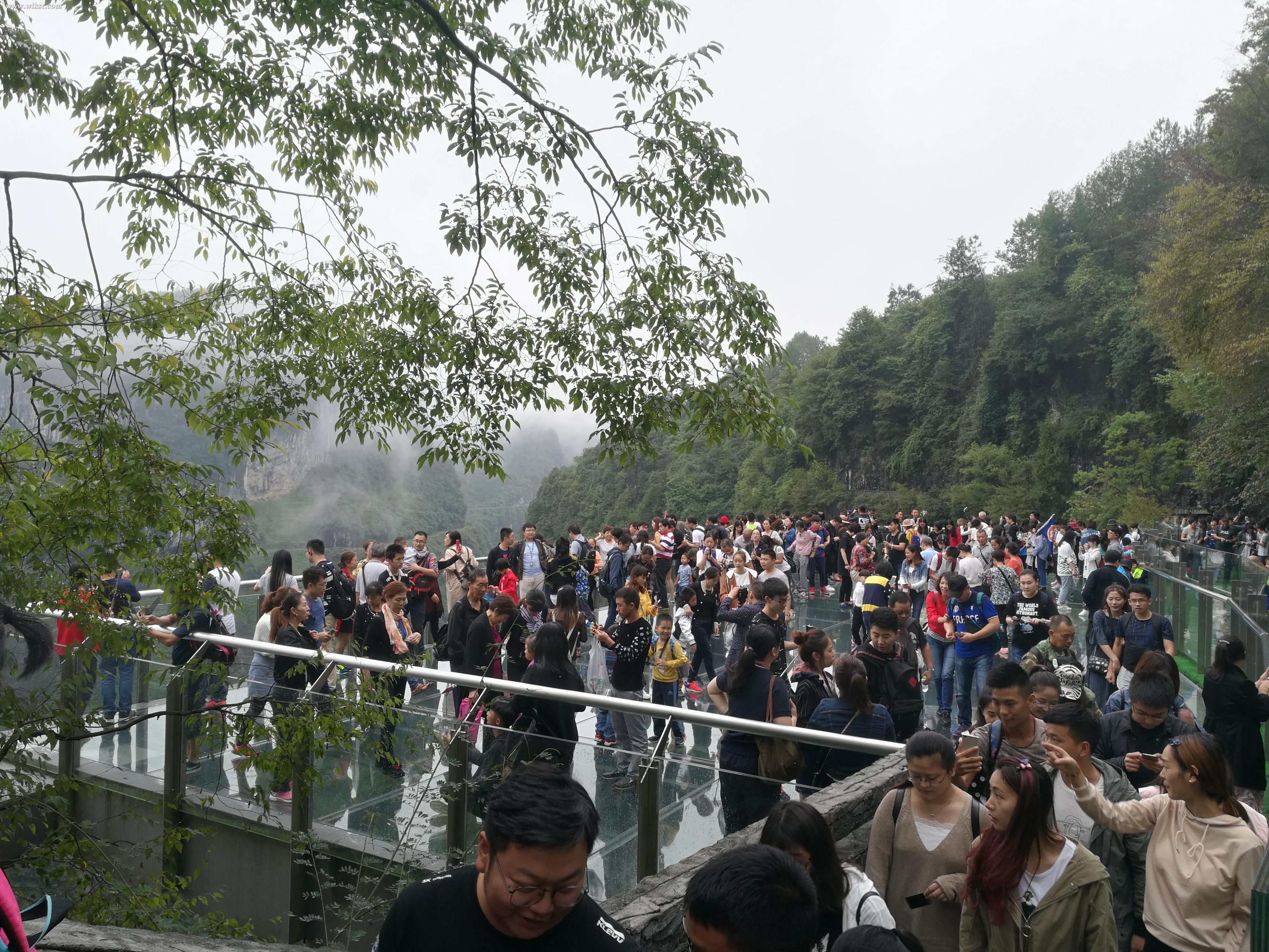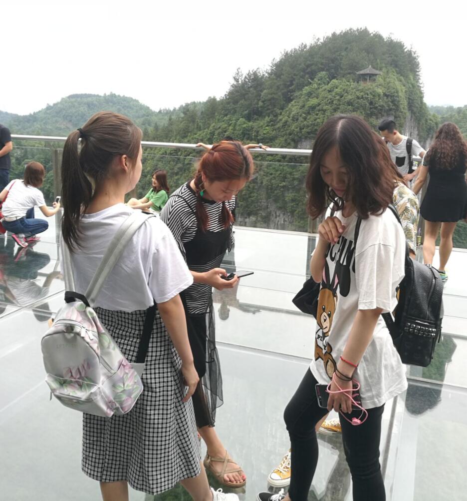 天生三橋懸崖玻璃眺臺位于高達280米的垂直懸崖絕壁上空,站在眺臺上透過透明的玻璃,可以清晰地看清腳下的“萬丈深淵”,稍有代入感的人便會腳抖發軟,盡管內心是恐懼的,不過記者觀察到,絕大部分人在短短幾分鐘內便能夠克服害怕的情緒,勇敢地、自在地在透明玻璃上自由行走,并且努力尋找恰當的角度拍照留戀。