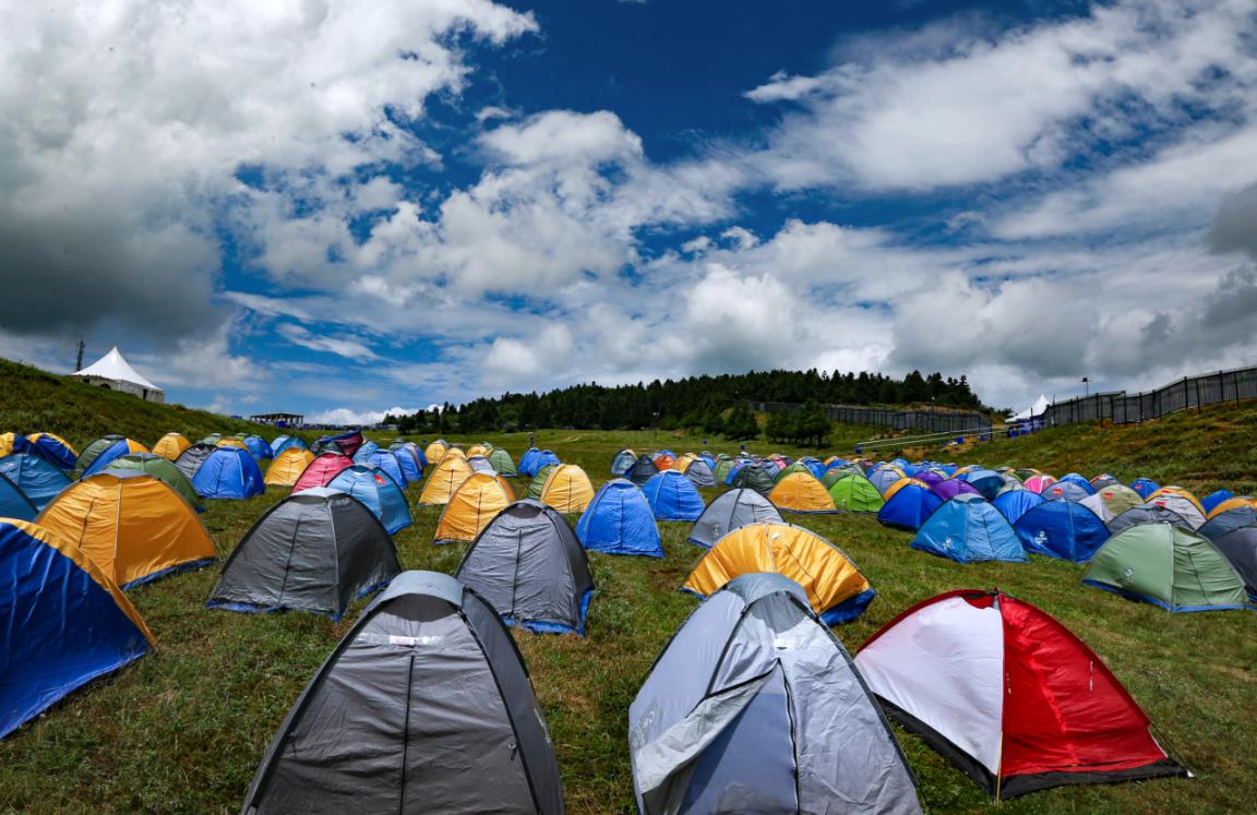 仙女山音樂節(jié)集露營、音樂、避暑等元素為一體,現(xiàn)場可容納超千頂帳篷。另根據(jù)天氣預(yù)報顯示,8月17日演出當天仙女山天氣晴好,平均氣溫21℃,負氧離子濃度舒適,適合草原帳蓬露營聽音樂。
