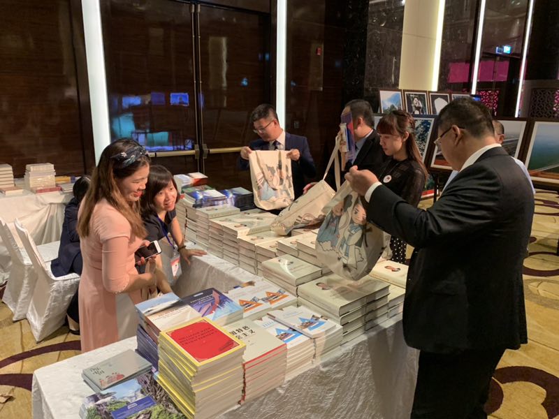 下午5點(diǎn)30分,重慶文化旅游展展區(qū)正式對(duì)嘉賓開(kāi)放,展出數(shù)件“山城”作品,其中一半作品來(lái)自被譽(yù)為“世界喀斯特生態(tài)博物館”的武隆,包括芙蓉江、《印象武隆》、天生三橋、玻璃眺臺(tái)等,此外,重慶市武隆喀斯特旅游產(chǎn)業(yè)(集團(tuán))有限公司還特意為嘉賓朋友們準(zhǔn)備了武隆旅游文創(chuàng)產(chǎn)品“武小仙”“隆小馬”女士挎包。展覽現(xiàn)場(chǎng)通過(guò)一幅幅生動(dòng)鮮活的照片,將中國(guó)人民70 年來(lái)的成長(zhǎng)與蛻變展現(xiàn)給越南人民,以利于大家更好地了解中國(guó)的昨天、今天和明天。