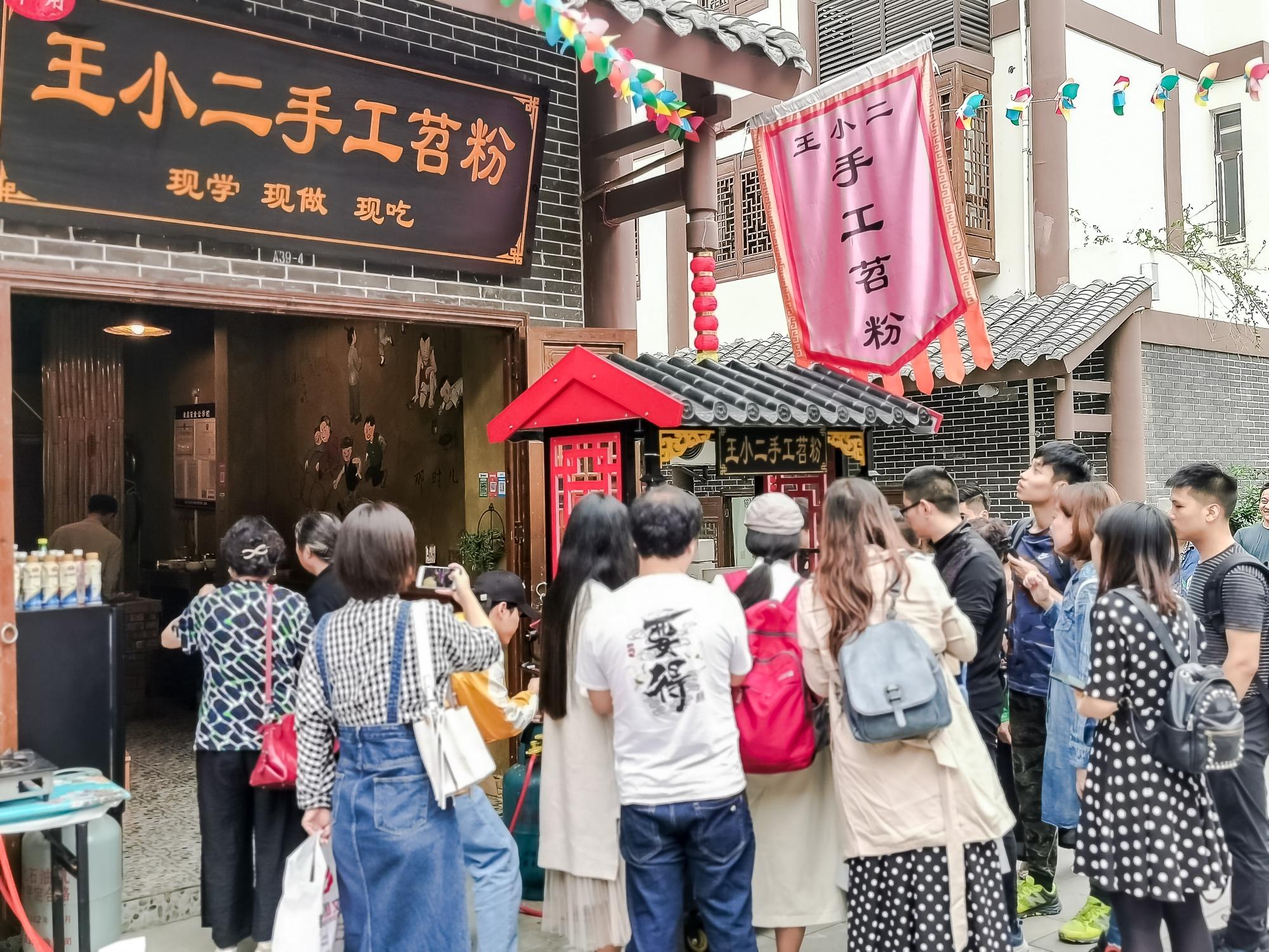羊角鎮(zhèn)位于武隆西部烏江河畔,這里依山傍水,環(huán)境優(yōu)美,這座以纖夫文化,以及武隆地道美食之苕粉文化為主題的新仿古建筑群,成為武隆旅游的又一張名片。羊角鎮(zhèn)纖夫街坊一巷為武隆酸辣粉一條街,主要品牌為“石磨手工現(xiàn)浪酸辣粉”,其“王小二手工苕粉”味道巴適正宗、地方特色明顯,堪稱羊角一絕,是游客必打卡的網(wǎng)紅美食。“王小二手工苕粉”有何不同?我們一探究竟!