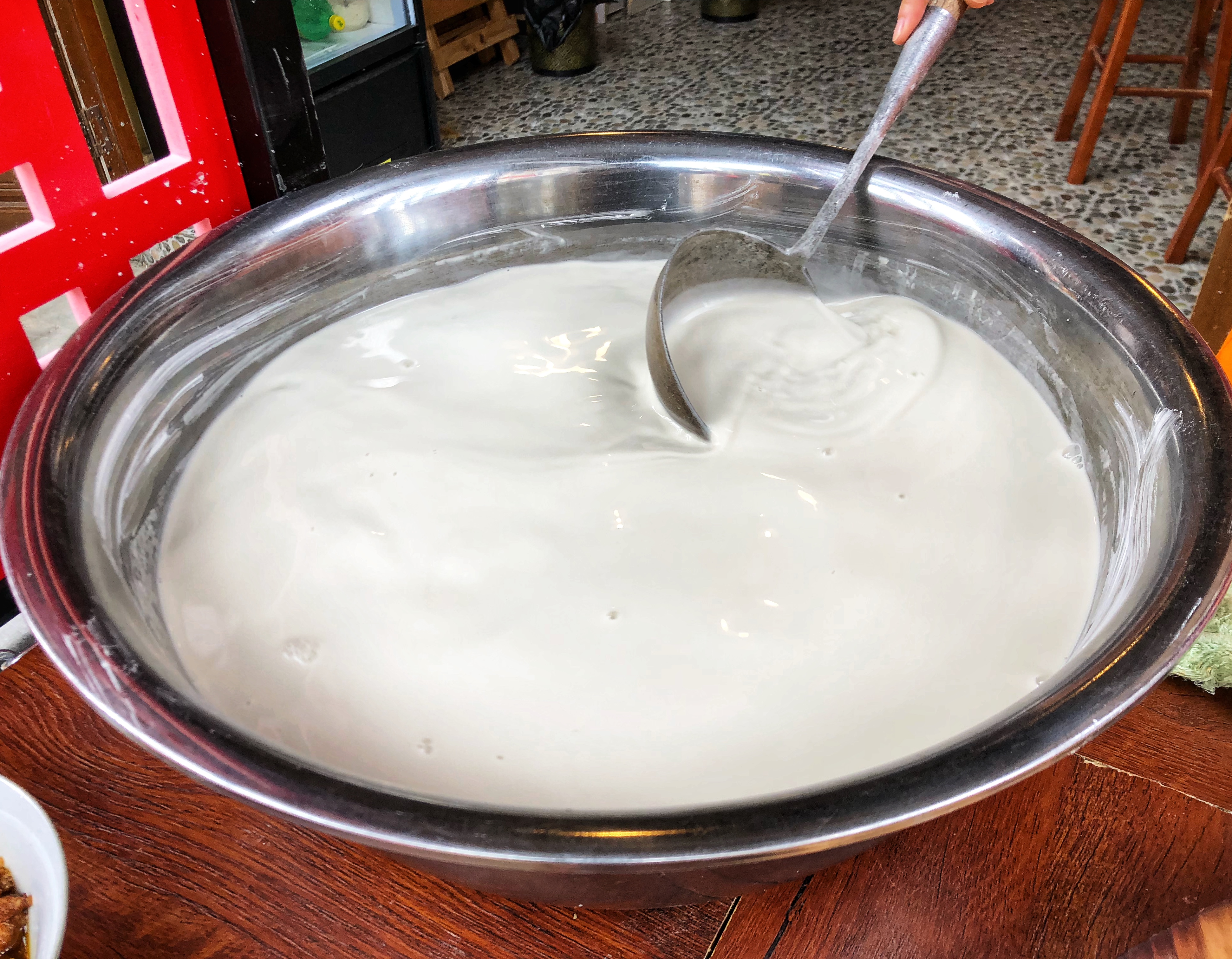 苕粉好不好吃,制作手工苕粉的最后環(huán)節(jié)(最后的一沉一淀)起著關(guān)鍵作用,“王小二手工苕粉”店主是使用純手工制作,紅薯粉加水?dāng)嚢瑁谷肽>撸邷啬毯蟪寥胨校焱钢髶瞥觯谐尚K,放入碗,加入祖?zhèn)髁现浞謹(jǐn)嚢杈鶆蛉胛丁3善烦云饋眭r糯筋道,有種令人嘗之難忘的魅力。