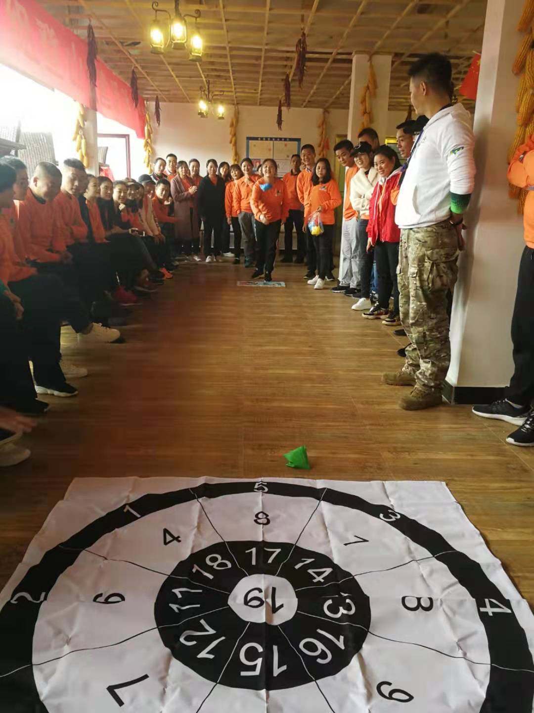 由于當日上午細雨不斷,因此,原本安排在上午的登山活動被調到了下午。上午,大家在主持人的帶領下被分為6組(一組10人)分別進行了“扔沙包”、“摸石頭過河”、“穿衣服接力”三項趣味活動,在活動過程中大家皆全力以赴,毫無懈怠之意,與隊員積極配合共同完成每一項活動,力爭為自己的團隊取得好成績而貢獻力量。