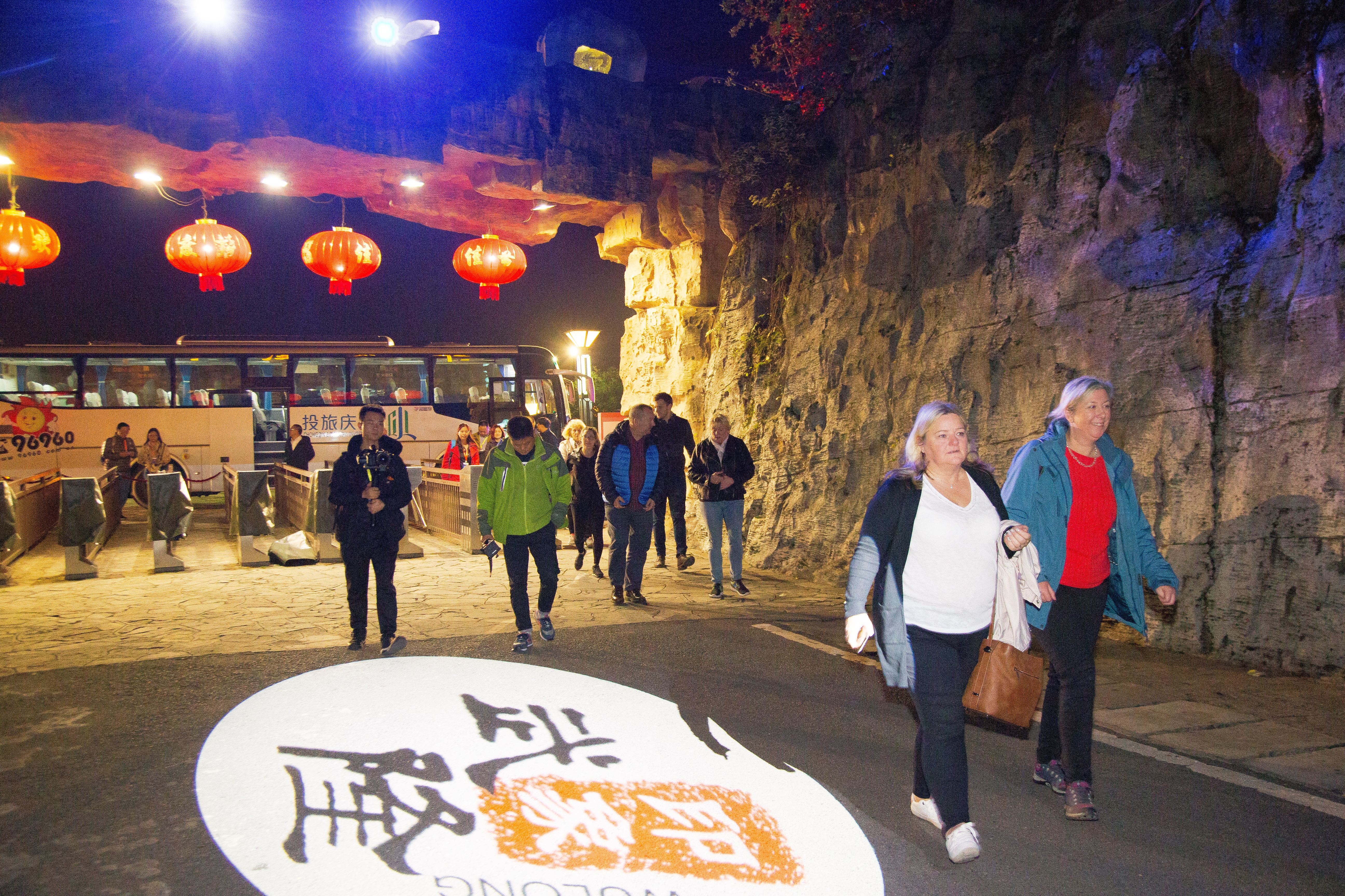 前往《印象武隆》劇場的外國姐妹