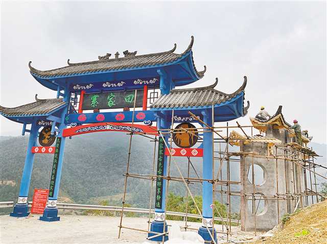 浩口鄉田家寨,寨口的牌坊正在打造中。記者栗園園攝