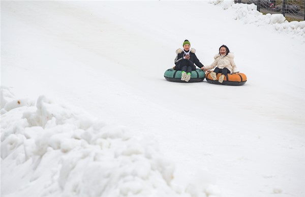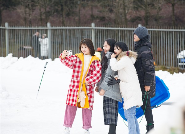 大巴車抵達武隆景區后,車上一行人先是直奔仙女山滑雪場展開了他們這個冬季的第一場雪上運動,雙板滑雪、單板滑雪、雪上飛碟(雪圈)、滑雪撬、霹靂板滑雪……,不論他們是情侶,還是閨蜜或基友,都在冰雪中激情狂歡。一位美女大學生表示,原來南方的雪上運動也可以玩得不亦樂乎,真是太棒了。