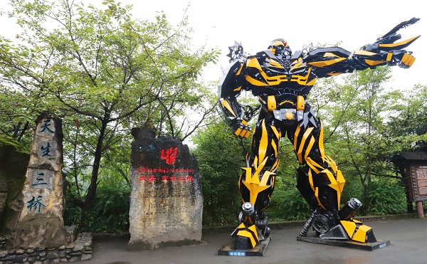為了紀念《變形金剛4》,景區制作了兩個巨型變形金剛模型,其中大黃蜂模型放置于景區入口處,機械恐龍模型放置于坑底,它們已成為廣大游客及金剛迷的必打卡點。