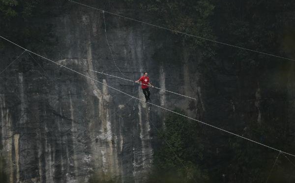 天生三橋300米高空走鋼絲。