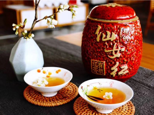 據悉,“仙女紅”茶生長在白馬山天尺情緣景區,獲國家有機食品認證,純天然生長,經過萎凋、揉捻、發酵、烘干、精選等工序,產出的茶葉鮮嫩甜香、湯色紅艷、回味綿長,乃茶中精品。