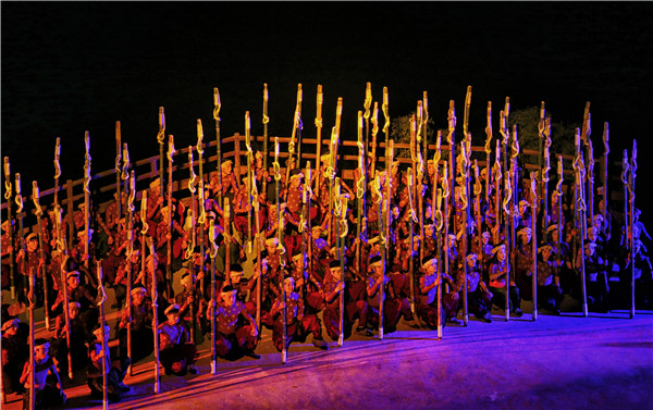 “印象武隆”大型實(shí)景演出由印象“鐵三角”張藝謀任藝術(shù)顧問(wèn),王潮歌、樊躍任總導(dǎo)演,200多位特色演員現(xiàn)場(chǎng)真人真情獻(xiàn)唱,以瀕臨消失的“號(hào)子”為主要內(nèi)容,讓觀眾在70分鐘的演出中親身體驗(yàn)自然遺產(chǎn)地壯美的自然景觀和巴蜀大地獨(dú)特的風(fēng)土人情。