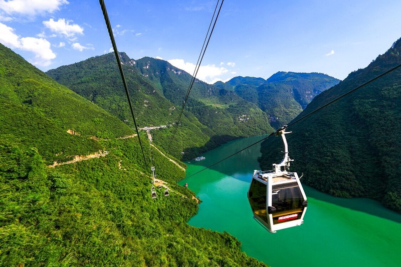 前往芙蓉江,必經之路是芙蓉江索道。該索道被稱為世界最長山水長廊,全長1.88公里,高低落差66米,索道采用雙向循環運行,單向運行需10分鐘,平均每小時可輸送游客3000余人次。