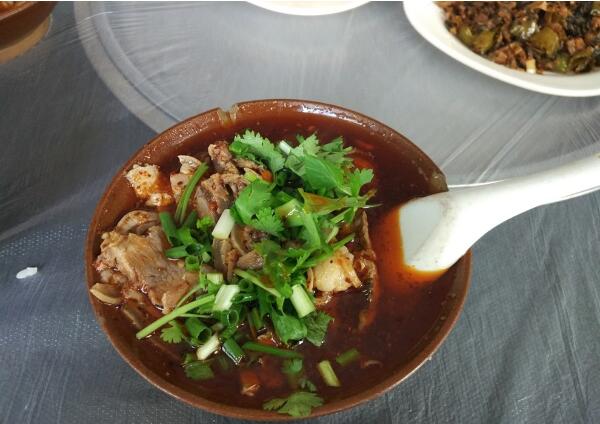 在眾多羊肉美食中,碗碗羊肉是以羊肉湯鍋演變而來,制作前將羊肉洗凈,用開水焯去血水,然后在鍋內放入植物油,放入白糖熬糖色,放羊肉炒至上色,倒入砂鍋,慢燉一個小時后,加入白蘿卜一起燉,等羊肉煮熟起鍋裝碗,在裝碗后加花椒面,蔥花,香菜。湯紅不辣、原汁原味、純香不膻,配上地道的老鹽菜和泡菜蘿卜,味道很巴適。