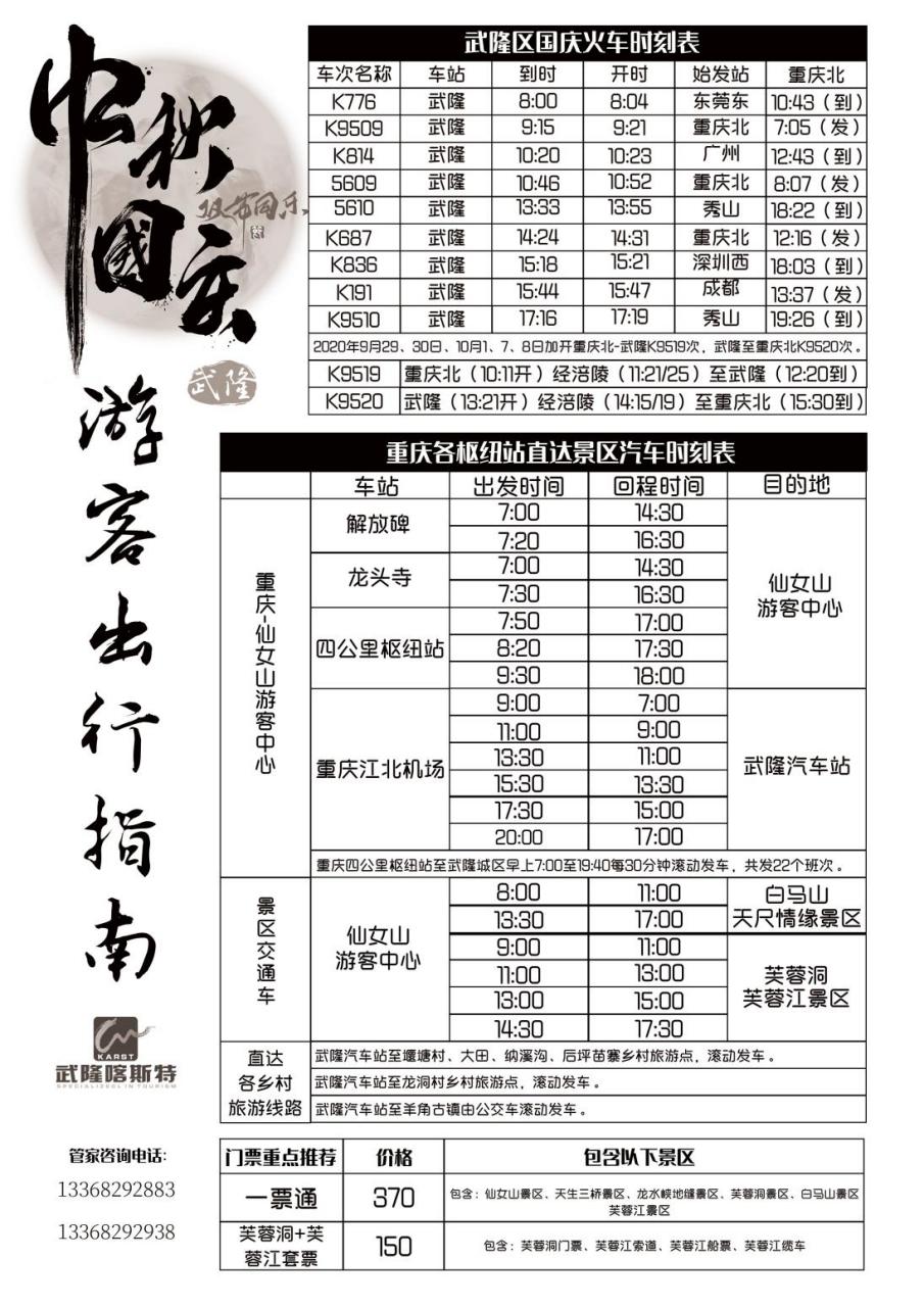這個(gè)國慶不能自駕武隆也不用擔(dān)心,重慶各點(diǎn)開通了直達(dá)景區(qū)及景區(qū)之間的交通客運(yùn)車,一是重慶各點(diǎn)直達(dá)仙女鎮(zhèn)游客接待中心車輛原3個(gè)班次,現(xiàn)增加為7個(gè)班次;重慶江北機(jī)場至武隆汽車站共計(jì)6個(gè)班次;重慶四公里樞紐站至武隆城區(qū)原發(fā)18個(gè)班次增至22班次。