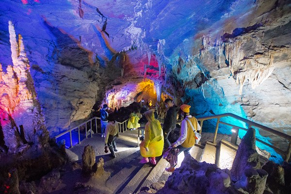 芙蓉洞是一個大型石灰巖洞穴,形成于120多萬年前,發育在古老的寒武系白云質灰巖中,洞中主要景點有金鑾寶殿、雷峰寶塔、玉柱擎天、玉林瓊花、犬牙晶花、千年之吻,動物王國、海底龍宮、巨幕飛瀑、石田珍珠、生殖神柱、珊瑚瑤池等。它是國家5A級景區、國家重點風景名勝區、國家地質公園、世界自然遺產地,與美國的“猛犸洞”,法國的“克拉姆斯洞”并稱世界三大洞穴。