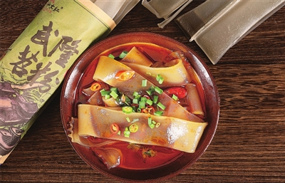 紅油翻滾的火鍋是武隆苕粉最完美的伴侶,鮮辣與筋道融為一體,被一向對重口味美食無比挑剔的重慶人視為,唯一可以與毛肚和鴨腸平起平坐的“素菜”。樸實無華的武隆苕粉,不僅成為了餐桌上的王者,更是承載了重慶人的美食記憶。