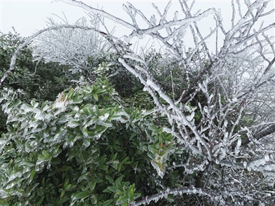 據了解,“霧凇”又稱之為“樹掛”,是霧氣遇冷后一層層凝結在枝葉上的冰晶。受冷空氣影響,這幾天仙女山霧凇天氣仍將持續,想去觀賞霧凇景觀的市民可得抓緊時間了。