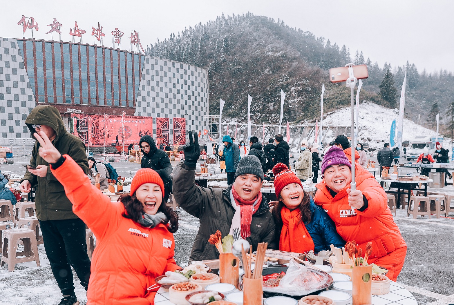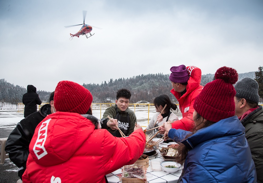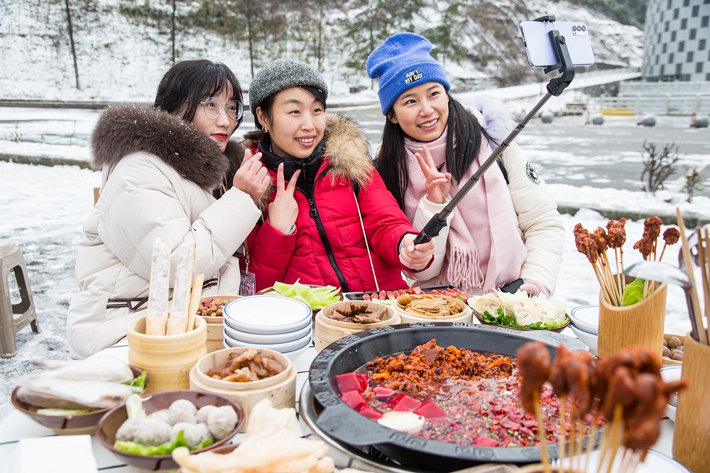當天中午,仙女山就開啟了一場別開生面的雪地涮火鍋活動,火紅的湯鍋、翻滾的熱情、醇厚的味道、潔白的冰雪,諸多元素疊加在一起,對于游客們來說注定是一次終身難忘的旅程。“好有意思哦,在雪地吃火鍋,想都沒想過。既然來了,肯定得試試!”一位游客表示。