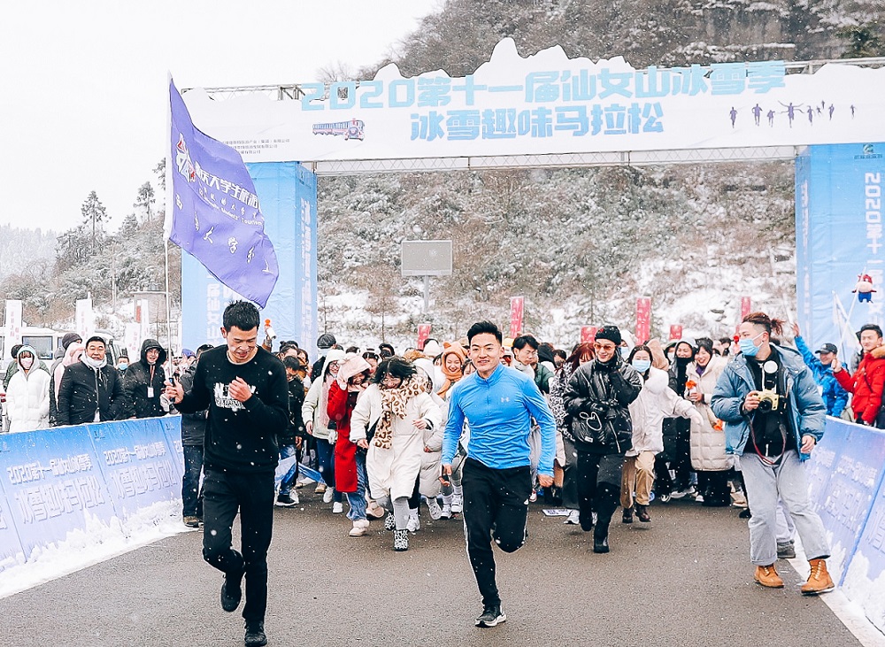 仙女山冰雪趣味馬拉松開跑。