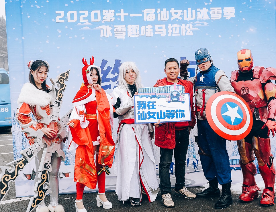 白雪茫茫的仙女山氣溫只有-6℃,跑者們卻身姿矯健,以“永不言敗”的精神跑完全程,充分展示了年輕一代的沖勁和精氣神。甚至有不少人大玩cosplay,精心裝扮成英雄聯(lián)盟刀妹、王者榮耀貂蟬、漫威英雄美國隊長等形象,大為吸睛。