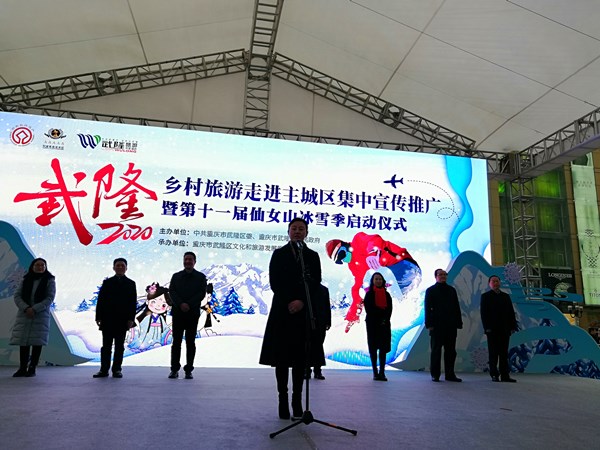 12月19日,由中共重慶市武隆區委、重慶市武隆區人民政府主辦,重慶市武隆區文化和旅游發展委員會承辦的“2020年武隆區鄉村旅游走進主城集中推廣暨第十一屆仙女山冰雪季啟動儀式”在重慶市渝中區解放碑中心廣場舉行。重慶市武隆區政府副區長蘇惠勇主持,中共武隆區委常委、常務副區長胡珍強等領導致辭,重慶市武隆區委副書記、區長盧紅宣布活動啟動,重慶市文化旅游委、重慶市武隆區等領導嘉賓及武隆重點旅游企業代表參加。