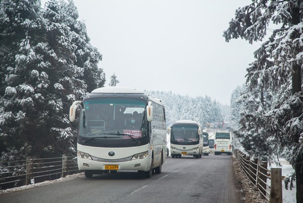 上午10點,仙女山門票房等待入園的車輛排起了長龍,在工作人員的耐心疏導下,旅游秩序良好,無交通混亂等現象。據景區工作人員介紹,為做好高峰接待準備,武隆景區積極協調交通部門,做好應急管理,對景區內外交通要道節點進行管控,并增加120臺大巴車不間斷循環輸送游客。