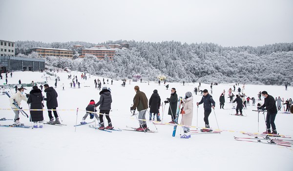 中午11點,仙女山滑雪場人氣爆棚,游客賞景玩雪不停歇。他們除了被仙女山童話般的冰雪世界深深吸引之外,對滑雪板、滑雪圈、滑雪橇等雪上激情運動也是偏愛有加,在景區內與雪共舞,狂歡不停。一位來自重慶主城的王女士表示,她尤其鐘愛冬季的仙女山,既可觀賞雪景奇觀,也可享受酣暢淋漓的滑雪樂趣,是一個令人心馳神往的地方,這也正是仙女山人氣超旺的原因之一。