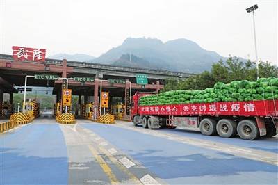 ① 2020年2月13日,滿載50余噸新鮮蔬菜和肉類的三輛貨車帶著武隆人民的愛心,啟程前往湖北省宜昌市夷陵區,以實際行動支援抗疫一線。