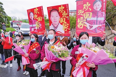 ② 2020年4月11日,我區以高規格禮遇熱烈歡迎三名馳援湖北孝感的醫療隊隊員回家。