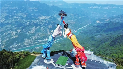 ③ 2020年6月20日,白馬山“飛天之吻”體驗票首發預售助旅帶貨直播在白馬山天尺情緣景區舉行。